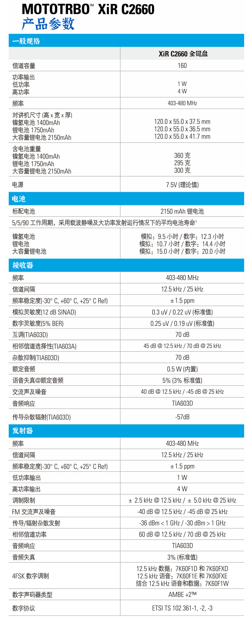 性價比卓越的XIR C2660對講機提供數字技術帶來的諸多好處一在數字模式下,比模擬對講機增加40%的通話時長、12.5kHz帶寬雙倍語音容量、 更好的音頻性能。MOTOTRBO對講機在整個通話范圍內將提供更清晰的語音通訊,不再有模擬機型中的靜電和背景噪音。